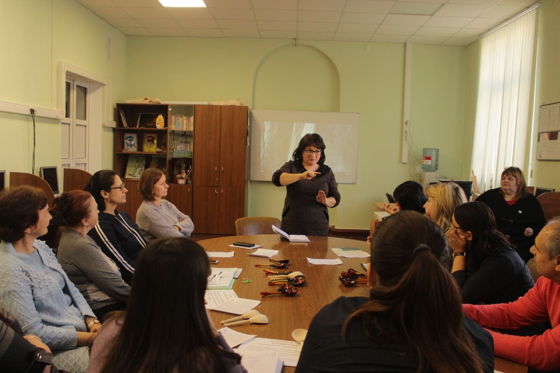 Педагоги приняли участие в творческом диалоге «Актуальное в работе с дошкольниками в условиях дополнительного образования», мастер-классах по вышивке лентами, валянию шерсти, работе с глиной, кружевоплетению. Обменялись опытом работы по темам: «Психологическая готовность детей к исполнению танца», «Нарушение осанки у детей. Компенсаторные упражнения и приёмы снятия мышечного напряжения», «Здоровьесбережение голосового аппарата, как рабочего инструмента педагога». Побывали на обзорной экскурсии-семинаре «От идеи до экспоната. Воспитательный потенциал Музея детской рукописной книги МАУДО «РГДДТ»». Кроме сотрудников Дворца свой опыт представили педагоги МБУДО «ЦДТ «Феникс». В мероприятиях приняли участие 110 человек.