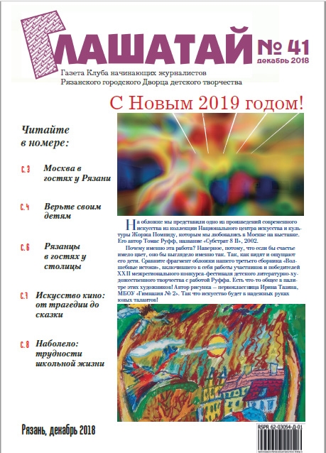 Юные журналисты первого и второго года обучения делают свои очередные шаги как корреспонденты средств массовой информации. О том, как им удаются материалы, насколько они интересны читателям, судить вам. Редакция «Глашатая» уже в десятый раз поздравляет всех с Новым годом и желает творческих успехов детскому и педагогическому коллективам Дворца! Пусть ваши таланты в 2019 году расцветут еще больше!