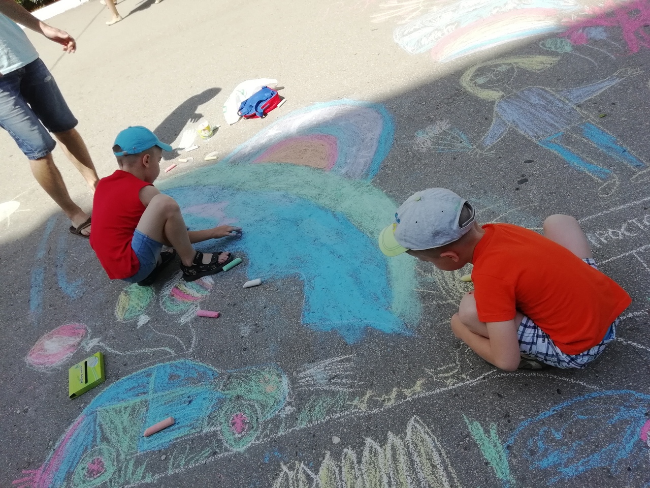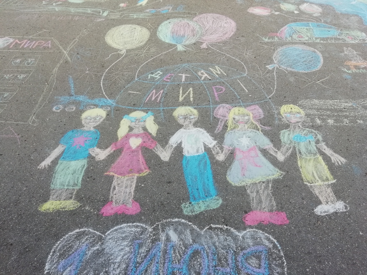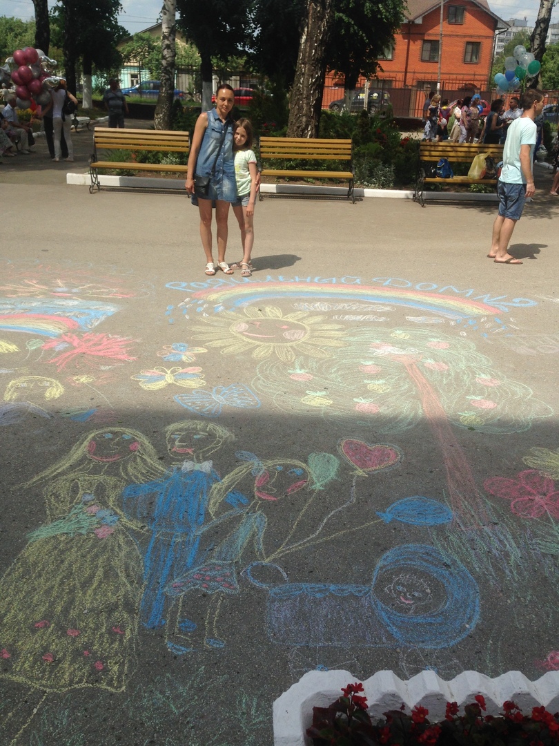 Ребята создали рисунки на асфальте, посвящённые семье, любви, мамам и детям.