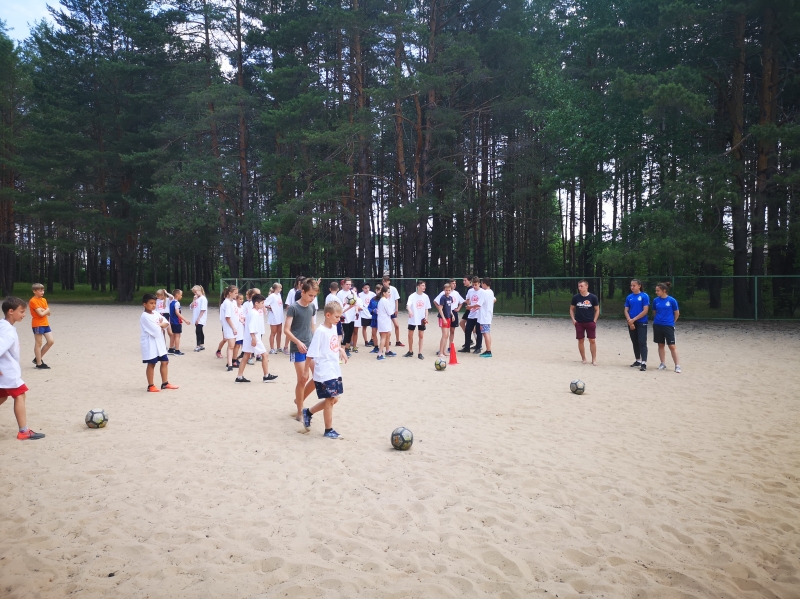 11 июня в структурном подразделении МАУДО «РГДДТ» «Оздоровительный лагерь «Смена» состоялся старт Всероссийского проекта партии «Единая Россия» «Детский спорт» – «Дворовый футбол». Праздник начался с праздничной линейки, где юные сменовцы поприветствовали всех почётных гостей лагеря, продемонстрировали свой творческий подарок – флешмоб «Спортивная Россия», а также выполнили активную «Зарядку с Чемпионами» под чутким руководством спортсменок из футбольной команды «Рязань-ВДВ».