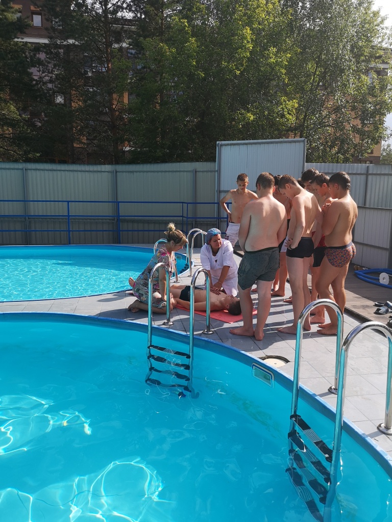 Занятиями по безопасности были охвачены все дети лагеря. Квалифицированно просветить ребят и продемонстрировать на практике приёмы оказания неотложной помощи помогла врач лагеря Галкина Татьяна Михайловна, врач-реаниматор Областной детской клинической больницы. На занятиях присутствовали и делали сообщения для детей по различным темам, касающимся безопасному поведению,  предотвращению непредвиденных ситуаций, исключению несчастных случаев Кузнецова Татьяна Борисовна, заместитель директора МАУДО «РГДДТ» по оргмассовой работе и детскому отдыху, Рогова Марина Васильевна, руководитель структурного подразделения, Королева Екатерина Анатольевна, старший воспитатель, инструктор по физической культуре Мостяев Владимир Владимирович. Дети задавали вопросы, активно участвовали в моделировании ситуаций, направленных на оказание помощи в экстремальной ситуации на воде.