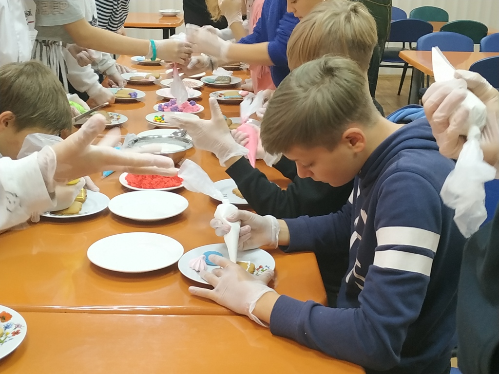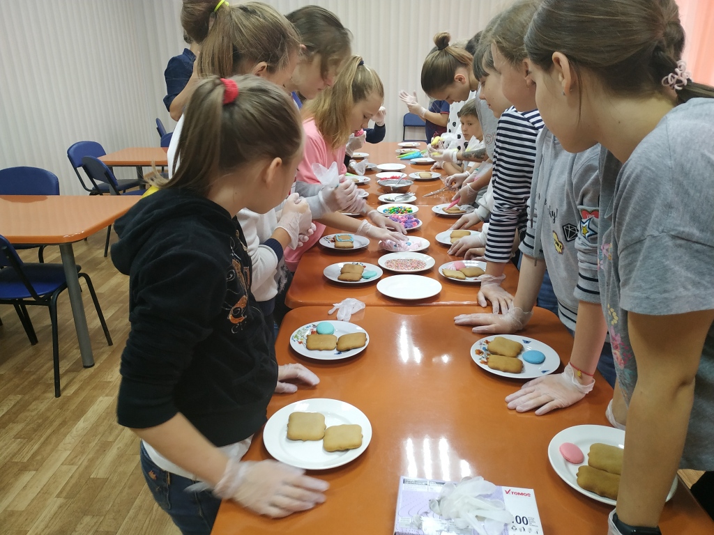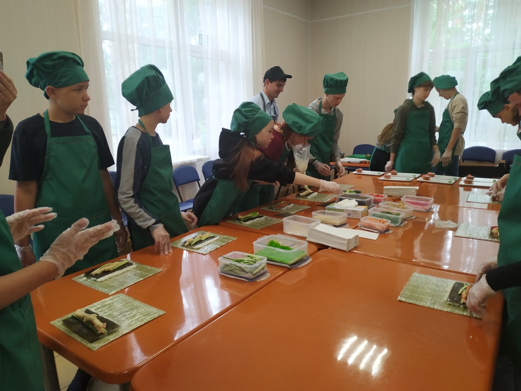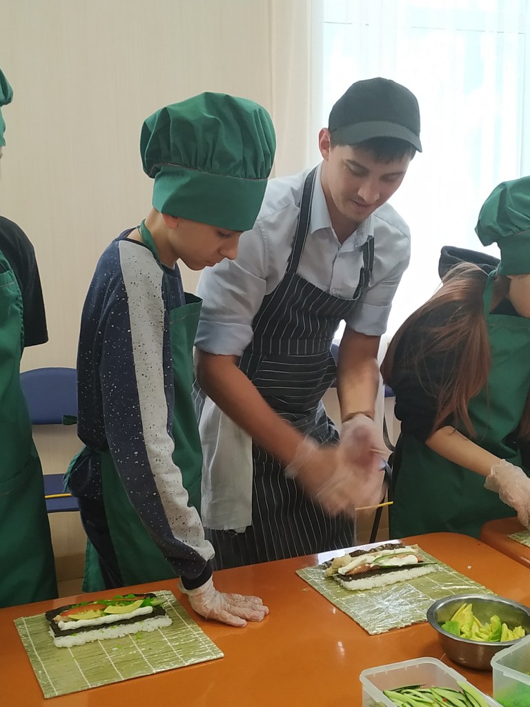 Бренд-шеф гостиничного комплекса «Старый город», ее команда и коллеги из Кофейни «Капкейк» провели для воспитанников лагеря мастер-классы по приготовлению роллов и росписи пряников.