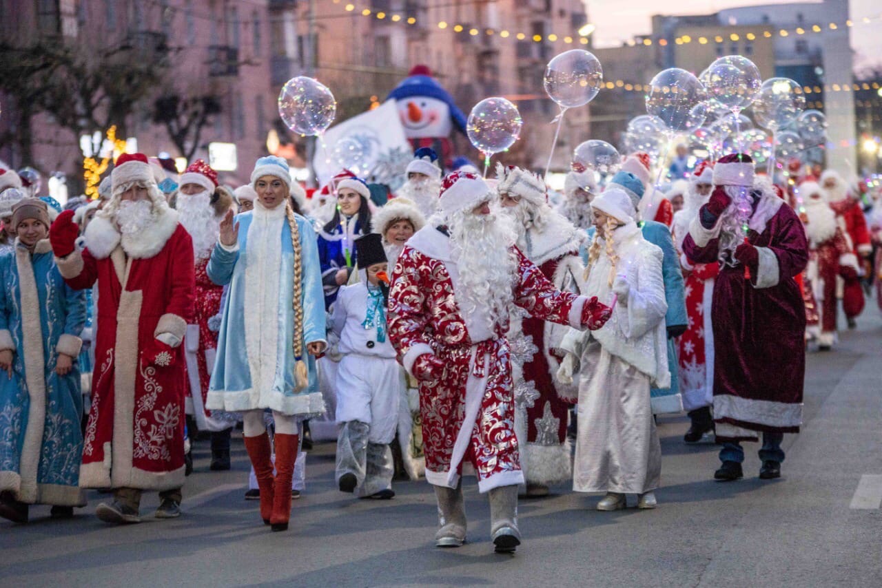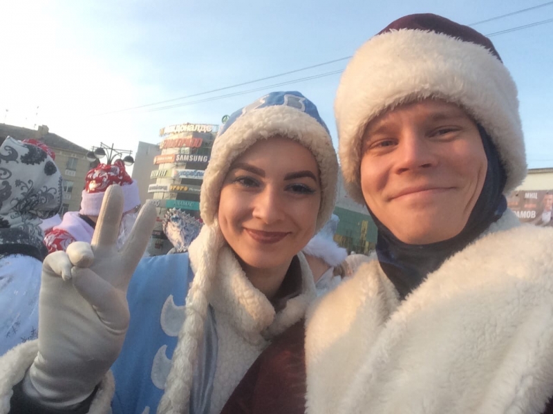 7 декабря сотрудники Дворца детского творчества Юлия Григорио и Юрий Рябов приняли участие в шествии Дедов Морозов и Снегурочек. Такое количество новогодних героев создало праздничное настроение у рязанцев.