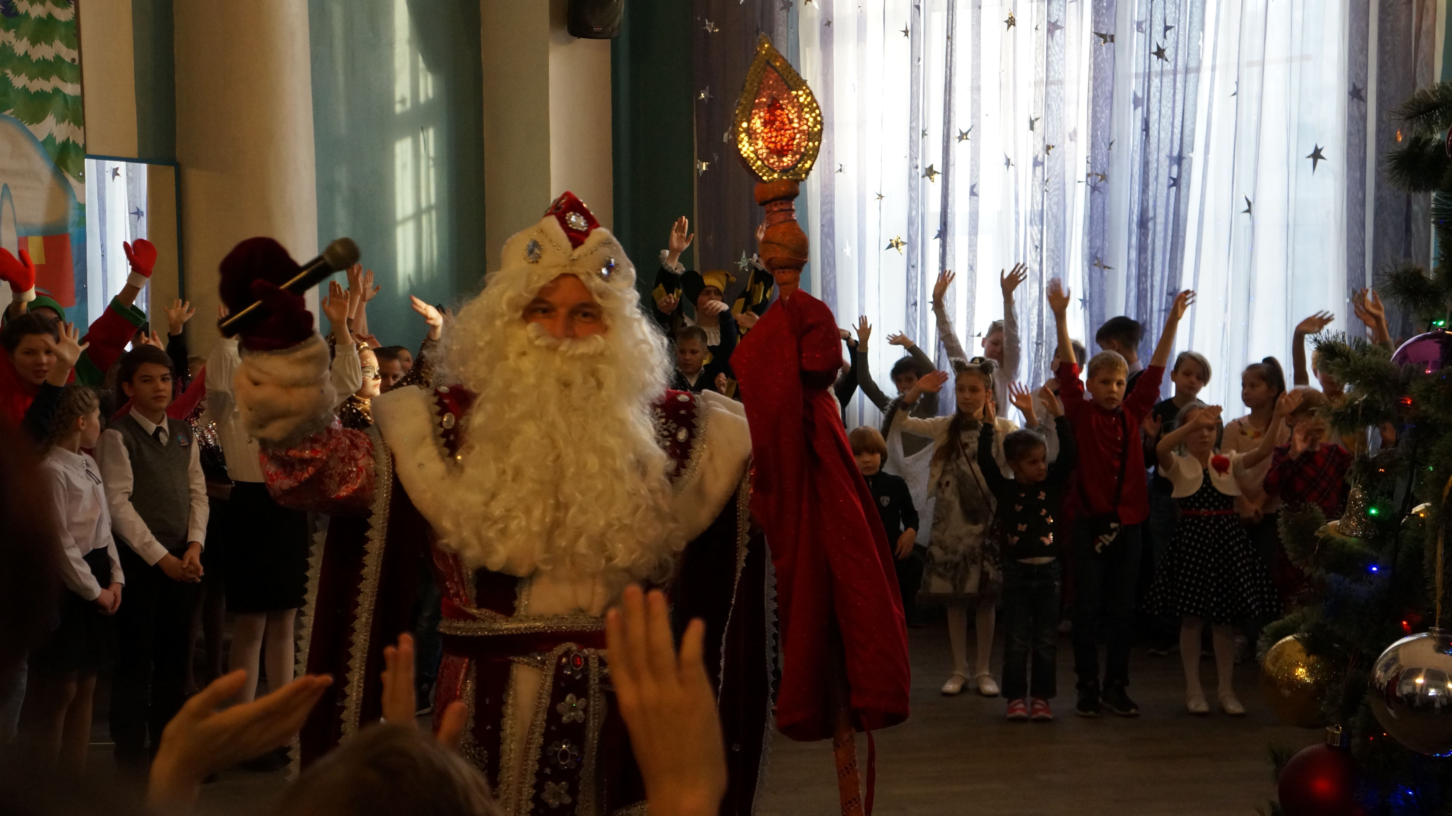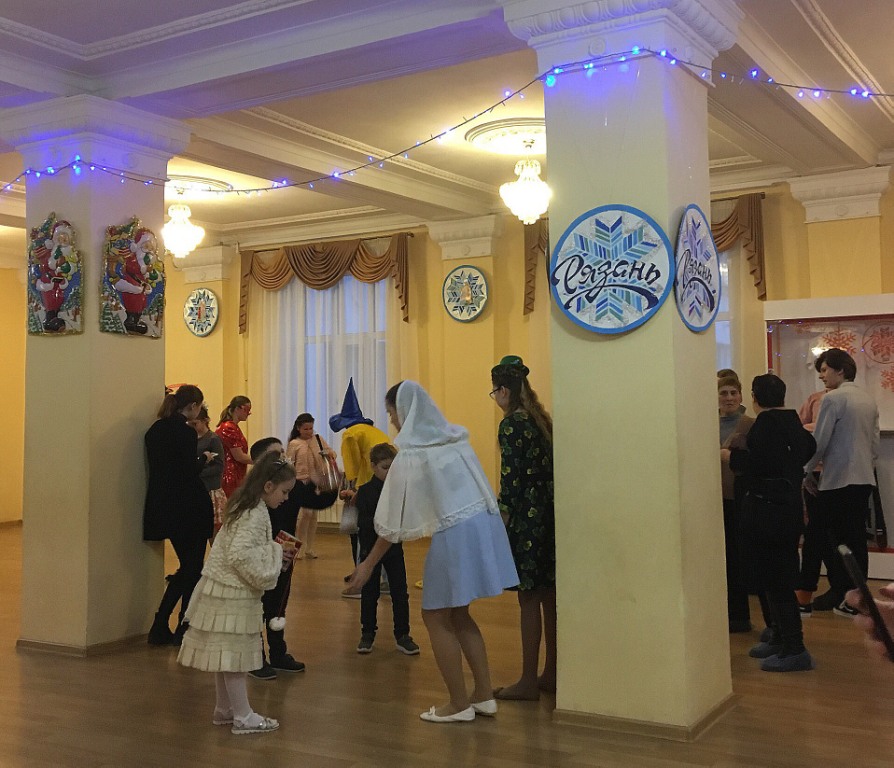 Представление завершилось праздничной программой со Снегурочкой и Дедом Морозом вокруг красавицы-ёлки в колонном зале Дворца. Ребята всех возрастов были увлечены танцами и играми, загадками про героев новогодней столицы, а главный хоровод прошёл под новую песню «Светом вся Рязань искрится».