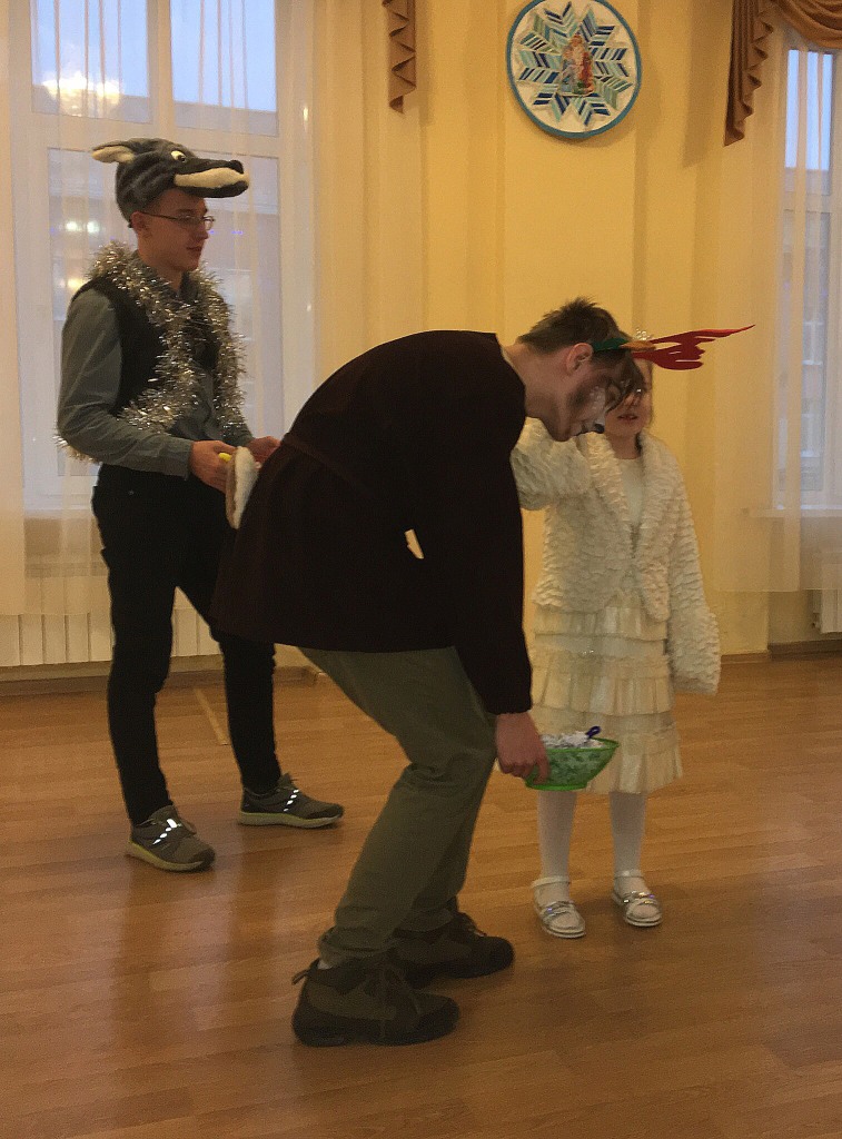 На ступенях Дворца гостей встречали сказочные герои. Скажем по секрету, что в ростовых куклах выступили ребята из Школы вожатского мастерства, с которыми с удовольствием фотографировались и дети, и взрослые. У стенда «Новогодняя столица» веселили присутствующих артисты студии «Росинка». Далее ребятам было предложено посетить выставку «Ёлочка-2020» и поиграть с аниматорами КСДП «Лидер».