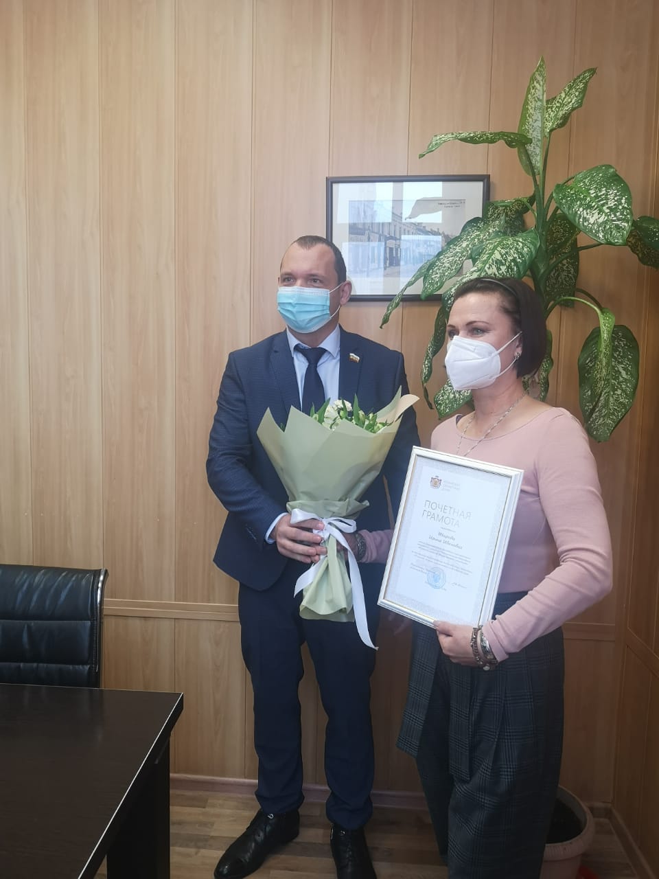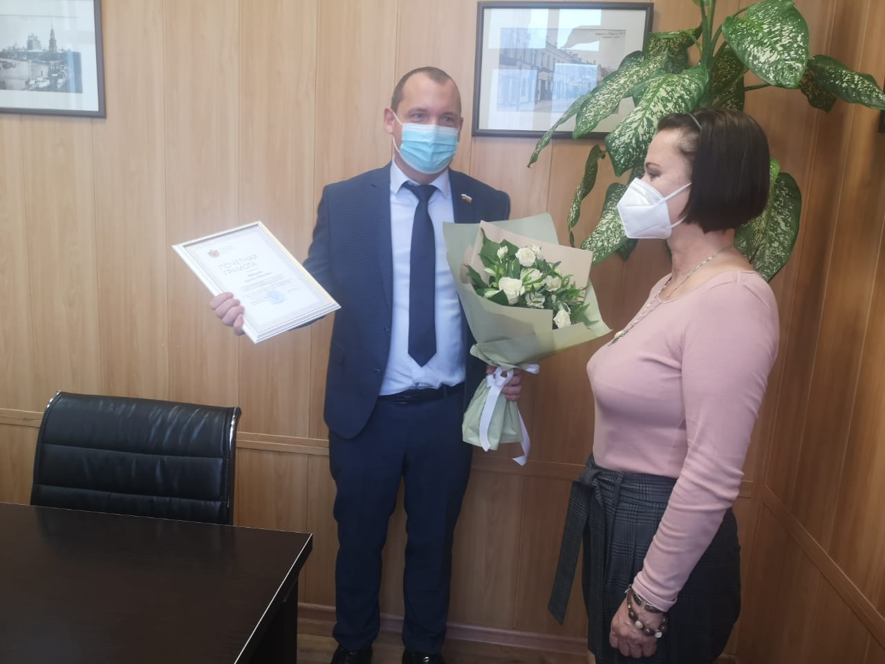 Депутат областной Думы Боронтов Дмитрий Евгеньевич вручил Ирине Ивановне Почетную Грамоту Рязанской областной Думы за значительный вклад в развитие дополнительного образования в Рязанской области, высокий профессионализм и многолетний плодотворный труд.