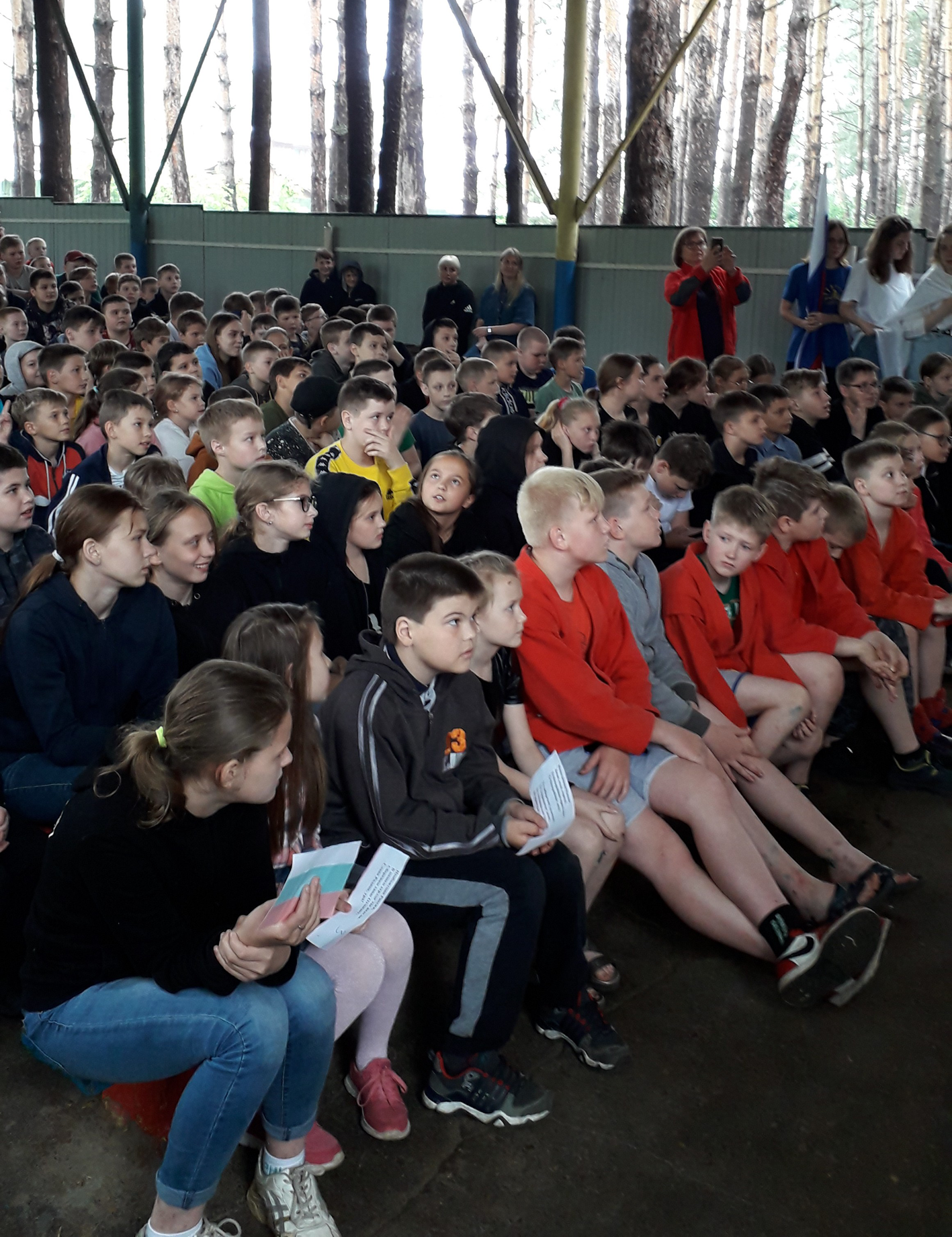Весь день в лагере звучали песни о России и Рязани, дети участвовали в спортивных состязаниях «Смениада-2021», посетили киносеанс и, конечно, праздничную танцевальную программу.