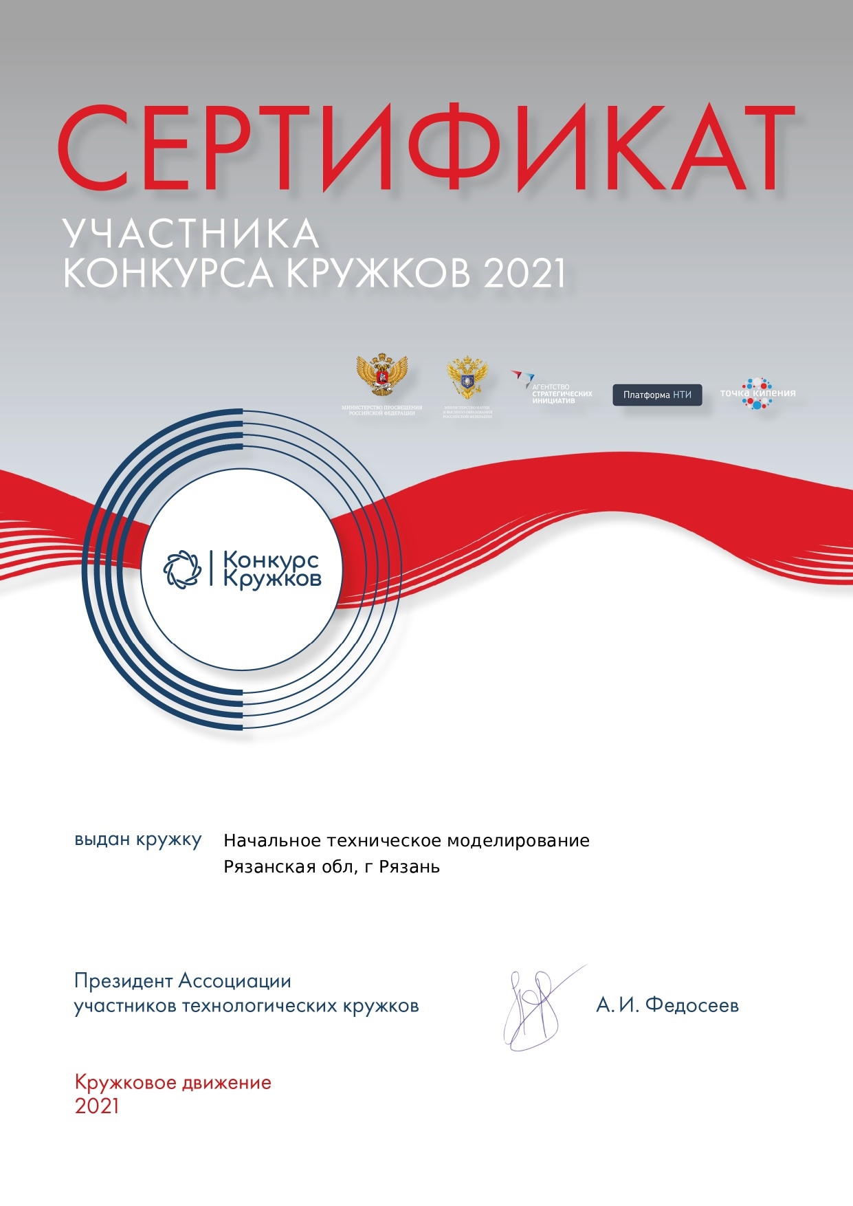 Два технических объединения МАУДО "РГДДТ" (Школа компьютерных знаний "Компас" и "Начальное техническое моделирование") стали участниками Кружкового движения Национальной технологической инициативы (НТИ) Всероссийского конкурса технологических кружков 2021, который проводился в Год науки и технологий в целях популяризации научно-технического творчества и качества технологического образования в России, при поддержке Министерства Просвещения Российской Федерации, Министерства науки и образования Российской Федерации. Всего на конкурс было принято 856 заявок из 73 регионов.