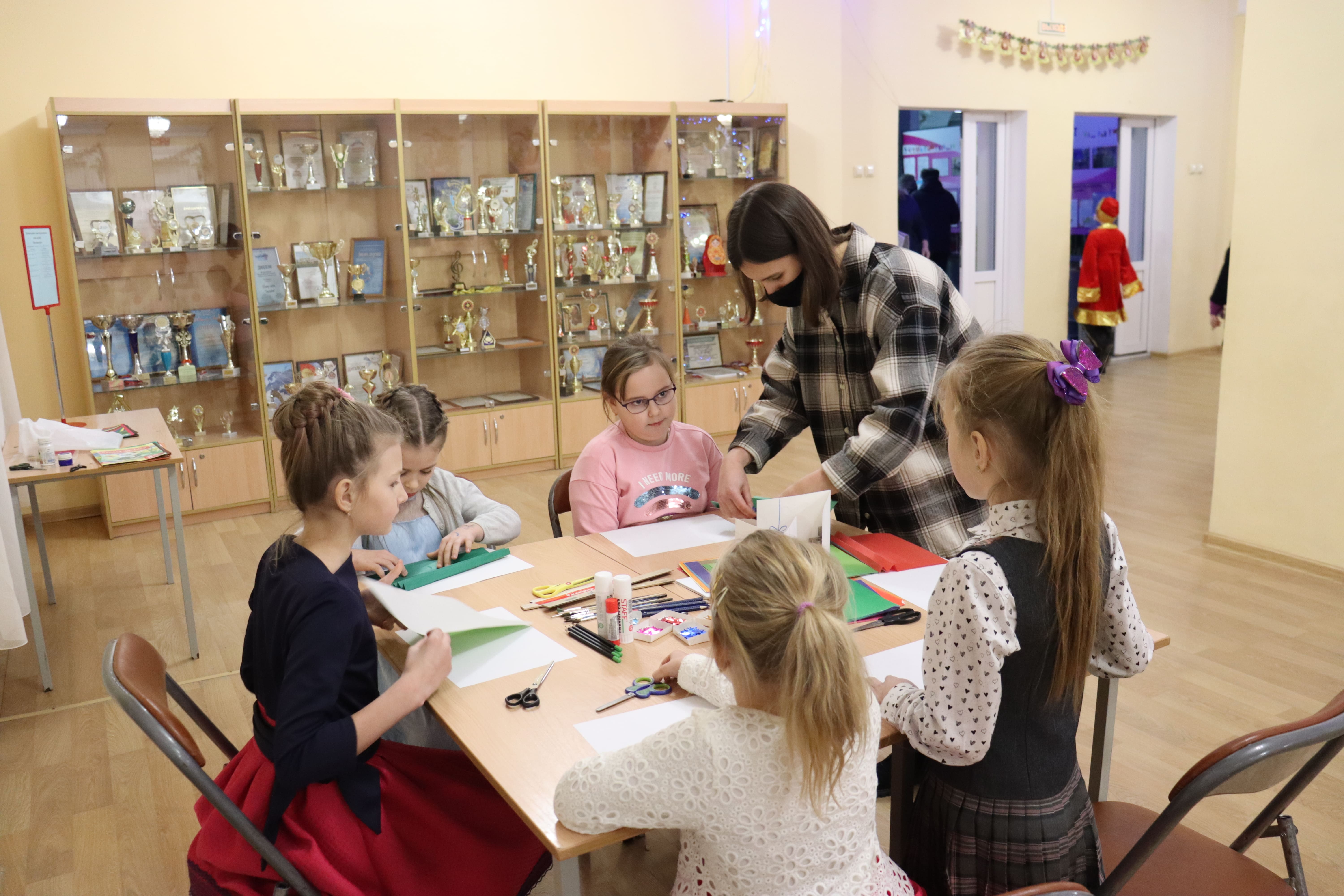 Учащиеся Дворца с удовольствием вместе с педагогами изготавливали новогодние игрушки и открытки в различных техниках.