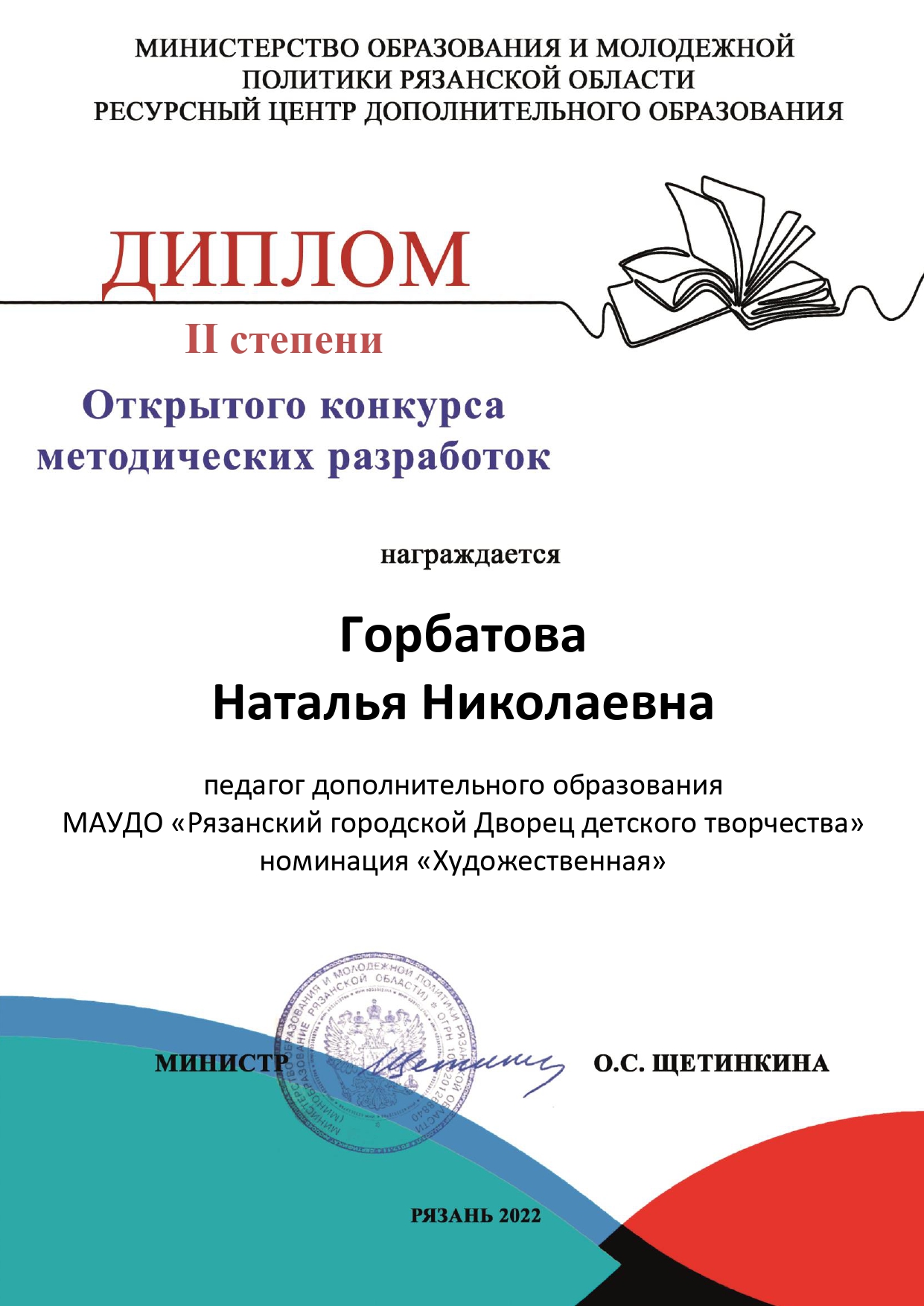 Горбатова Наталья Николаевна - Диплом II степени в номинации «Художественная».