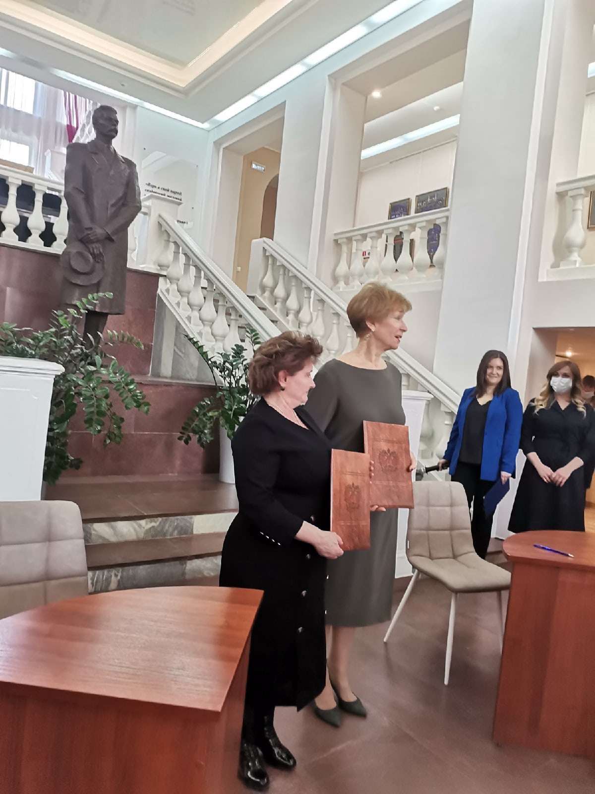 25 марта в России отмечается День работника культуры. В честь этого события прошло торжественное мероприятие в Рязанской областной научной библиотеке имени М. Горького. В программу входила церемония подписания соглашения о сотрудничестве библиотеки и Рязанского городского Дворца детского творчества. Директор библиотеки Гришина Наталья Николаевна и заместитель директора по оргмассовой работе и детскому отдыху Дворца Кузнецова Татьяна Борисовна под аплодисменты присутствующих поставили подписи в документе и выразили уверенность в продолжении сотрудничества и добрых традиций.