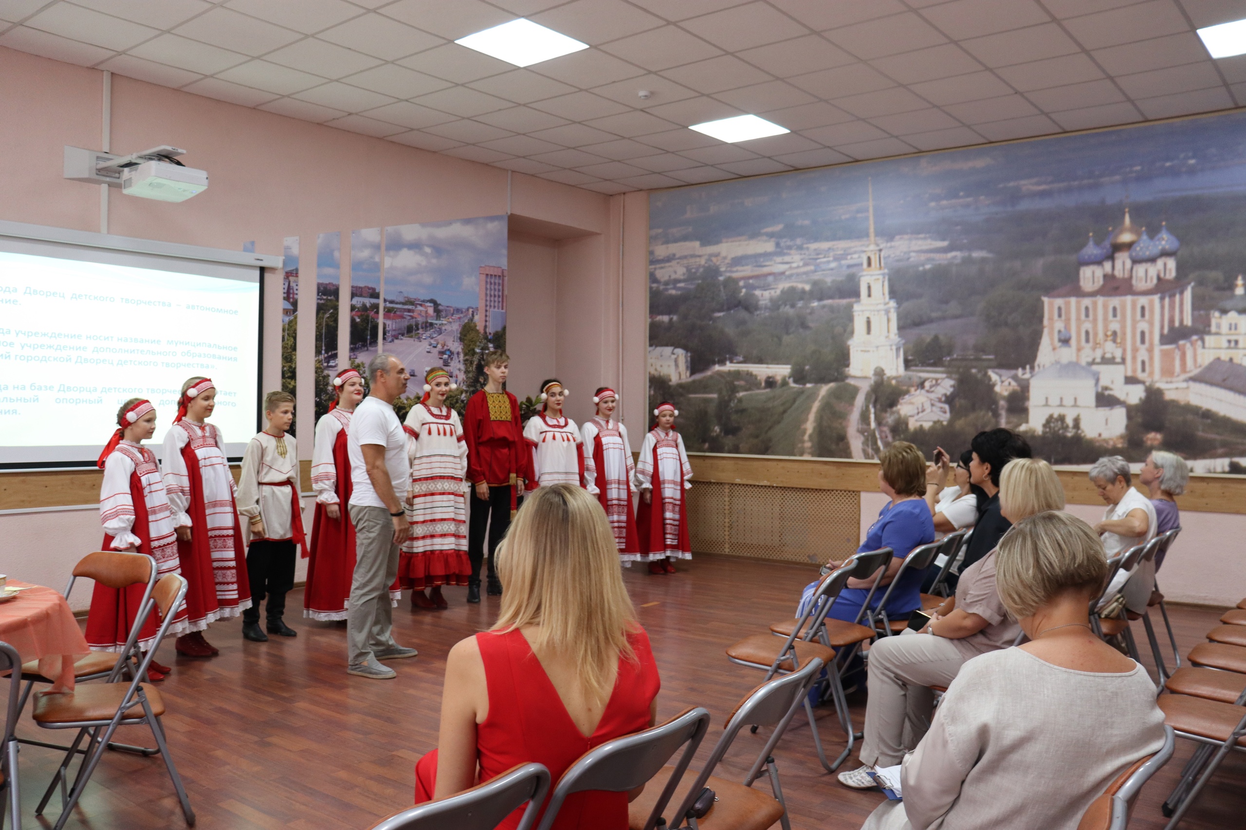 Во Дворце детского творчества 24 августа 2022 года в рамках Городского педагогического форума «Повышения качества образовательных результатов: вектор развития» состоялась встреча делегации из г. Липецка. Гостей приветствовал ансамбль народной песни «Русские узоры». Делегации была проведена экскурсия по учреждению: учебным классам, спортивному комплексу, зрительному залу, выставочному пространству. Участники делегации познакомились с Музеем детской рукописной книги, с интересом рассматривали уникальные экспонаты выставки. Приняли участие в круглом столе, после которого посетили мастер-класс по мультипликации.