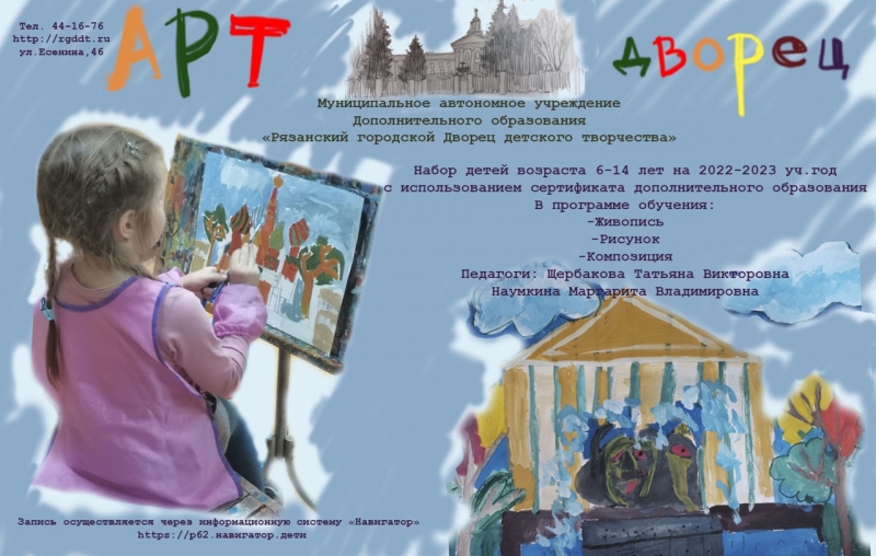 Запись через навигатор62 по ссылке: https://р62.навигатор.дети/program/198-izostudiya-art-dvorets