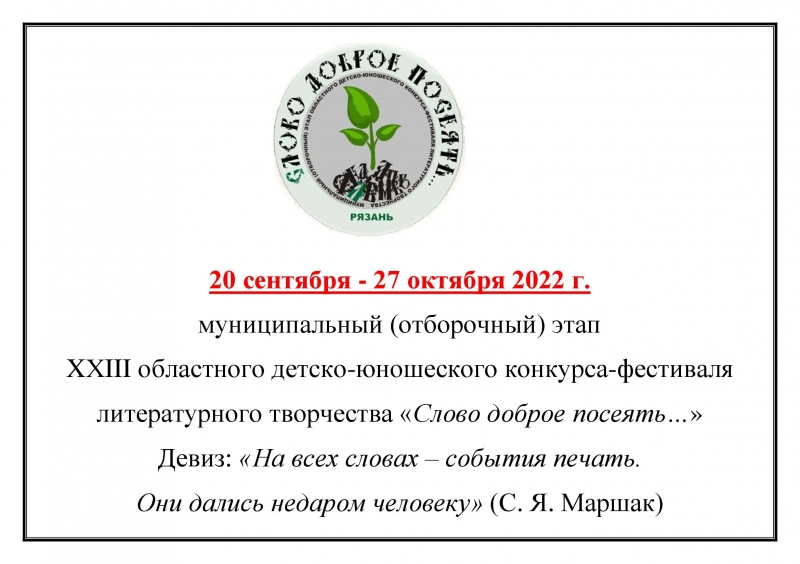 По каждому конкурсу, проводимому в этом году в рамках конкурса-фестиваля «Слово доброе посеять…», размещаем критерии,