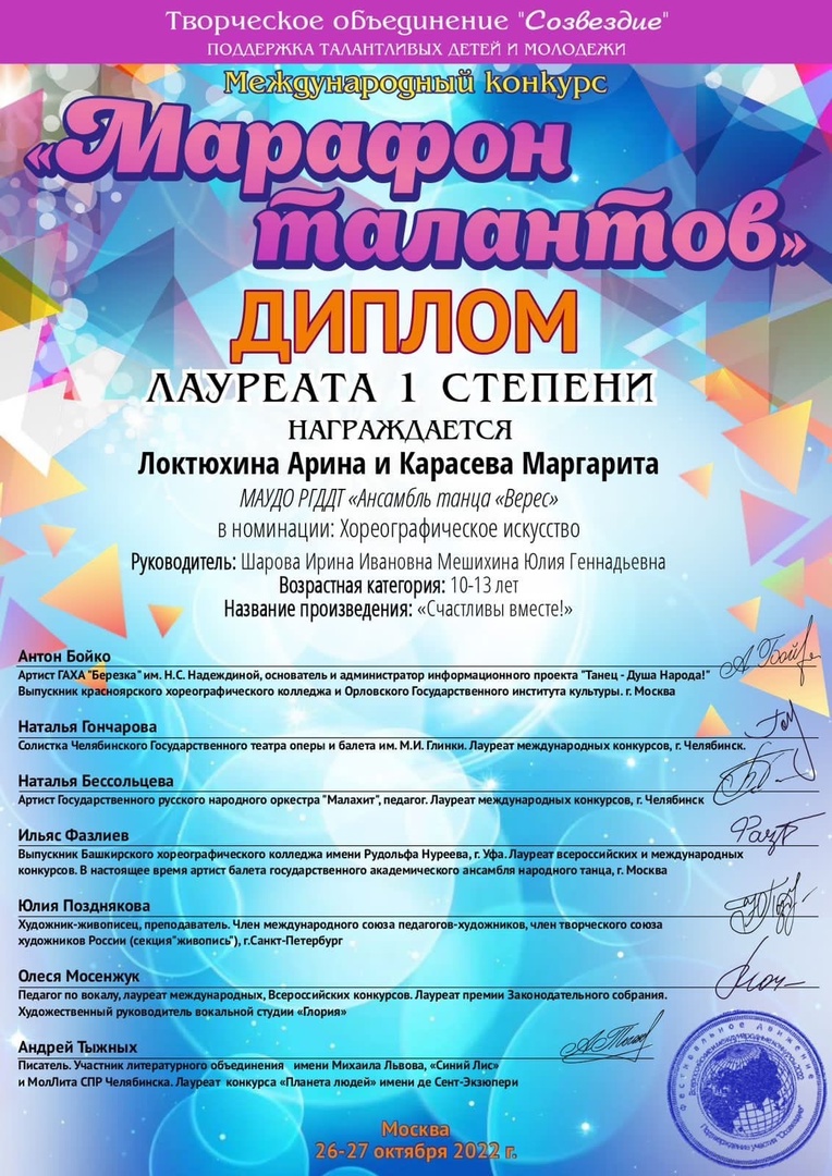 Локтюхина Арина , Карасева Маргарита - «Счастливы вместе»