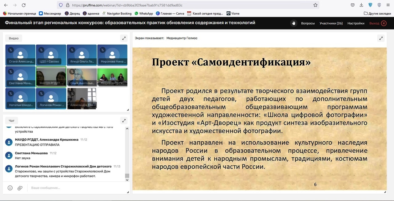 Педагоги дополнительного образования муниципального автономного учреждения дополнительного образования «Рязанский городской Дворец детского творчества» Крешихина Александра Михайловна и Наумкина Маргарита Владимировна представили проект «Самоидентификация», Королёва Екатерина Анатольевна – проект «Году культурного наследия посвящается…».