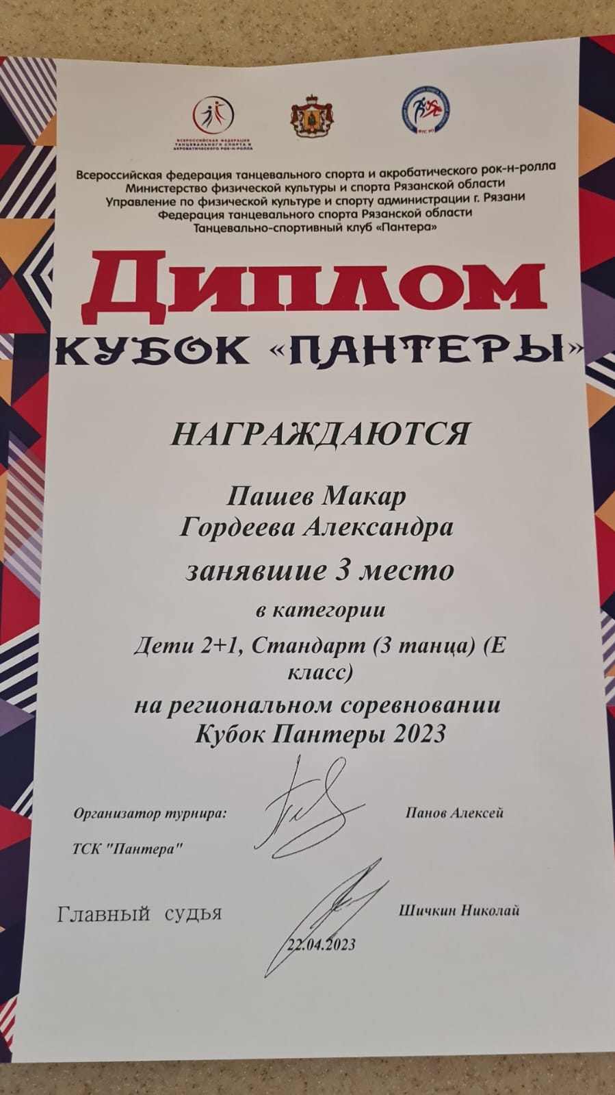 22 апреля 2023 года учащиеся танцевально-спортивного клуба «Солнечные ритмы» (педагоги Турчанов И.Г., Шматов А.И.) Рязанского городского Дворца детского творчества приняли участие в турнире по танцевальному спорту «Кубок Пантеры 2023. Первенства города Рязани. Официальные соревнования Рязанской области».