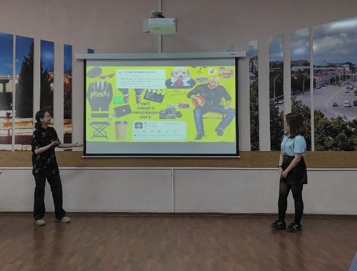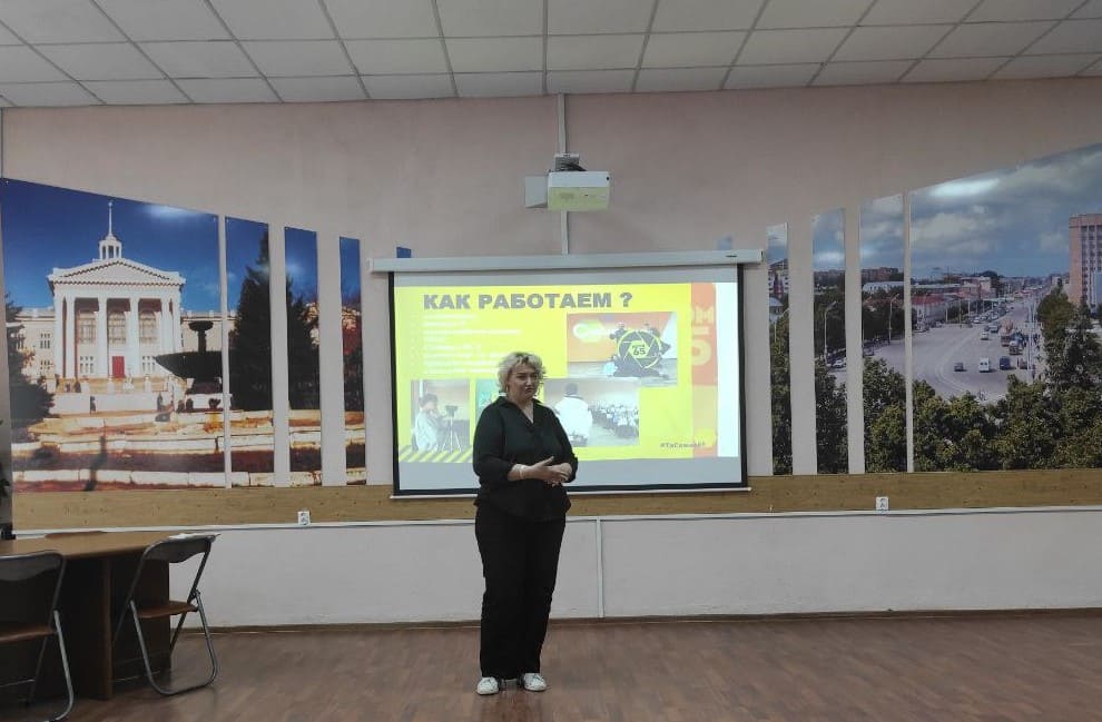 О структуре, задачах, содержании работы, команде, особенностях деятельности рассказали руководитель медиацентра "65ВООМ" МБОУ "Школа № 65" Анна Алексеевна Бурукина и юные журналисты объединения.