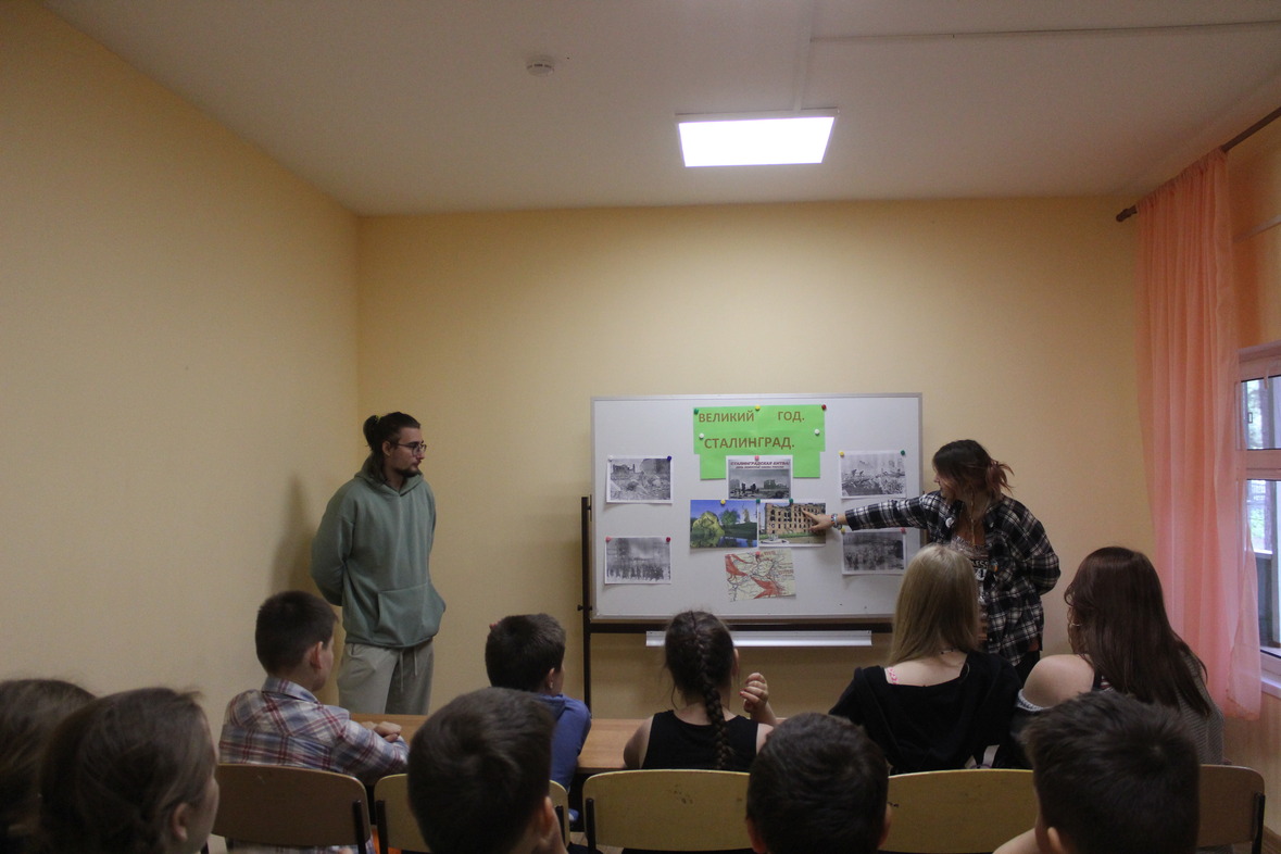 лагерях «Сказка» и "Смена", структурных подразделениях МАУДО 'РГДДТ", прошла игра «Великий год. Сталинград». Ребята узнали, какой ценой далась победа под Сталинградом, вспомнили героические события легендарной битвы, познакомились с историческими памятниками той великой битвы: Мамаевым Курганом, Домом Павлова. С большим интересом дети приняли участие в тематической викторине "Сталинградская битва. История подвига", а желающие прочитали стихотворения поэтов-фронтовиков. #сталинградскаябитва