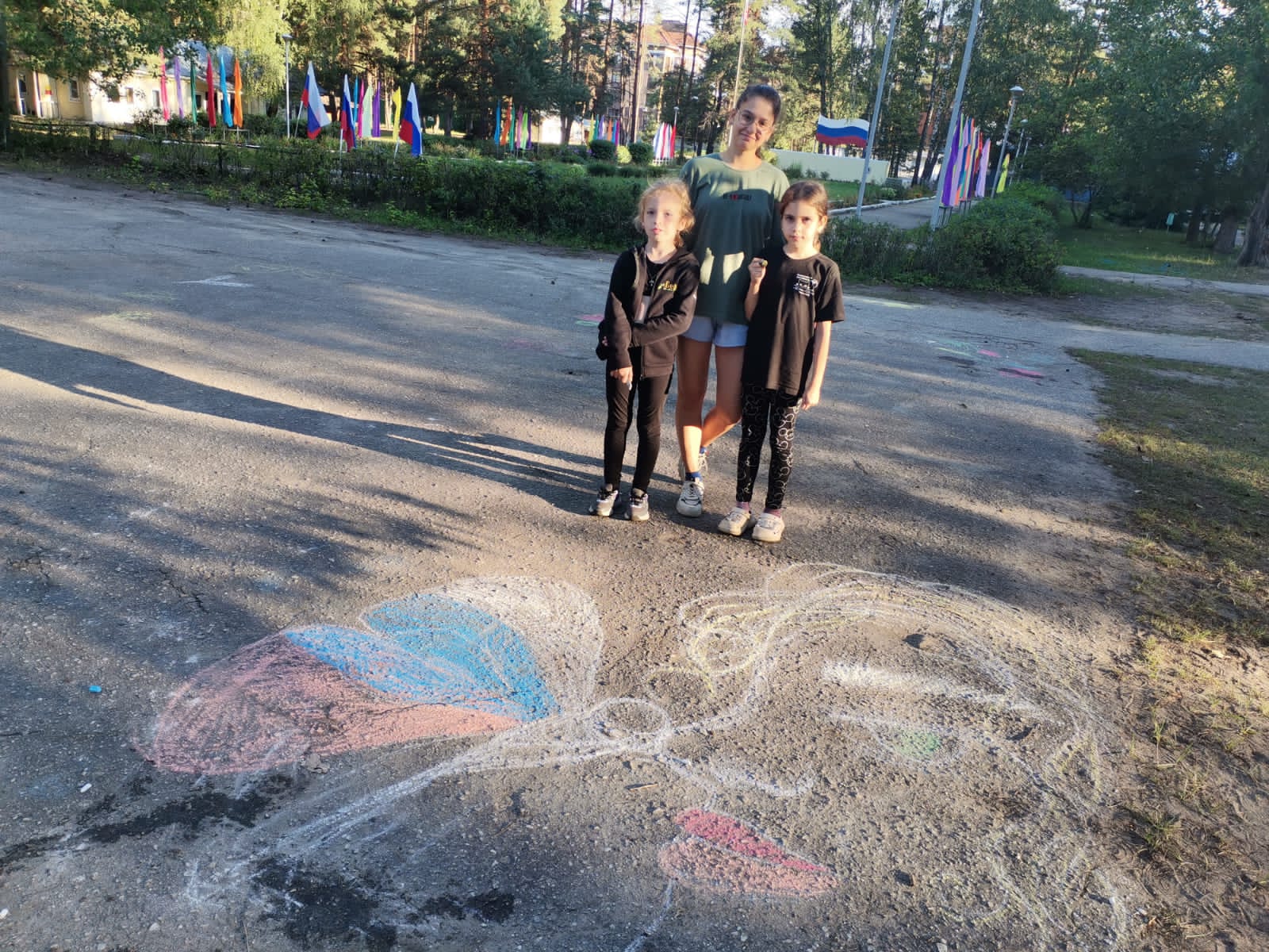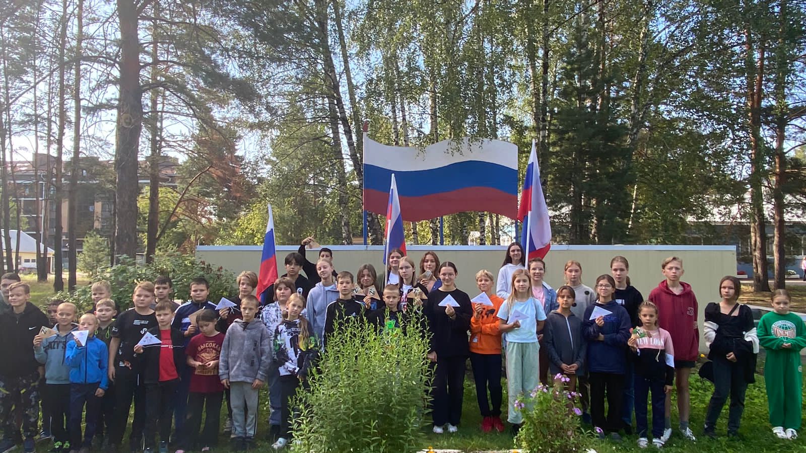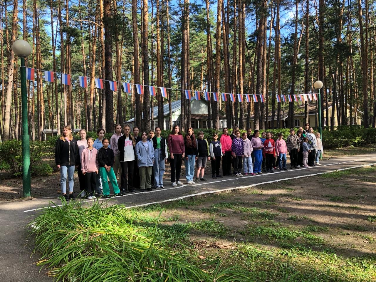 В оздоровительных лагерях "Смена" и "Сказка" проходит День единых действий, посвящённый Дню государственного флага Российской Федерации. В соответствии с планом прошли тематические торжественные линейки, конкурс рисунка на асфальте "Взвейся, триколор России!", викторина "История флага российского", фотосессия отрядов "На фоне российского флага", работает радиожурнал "Песни о России".