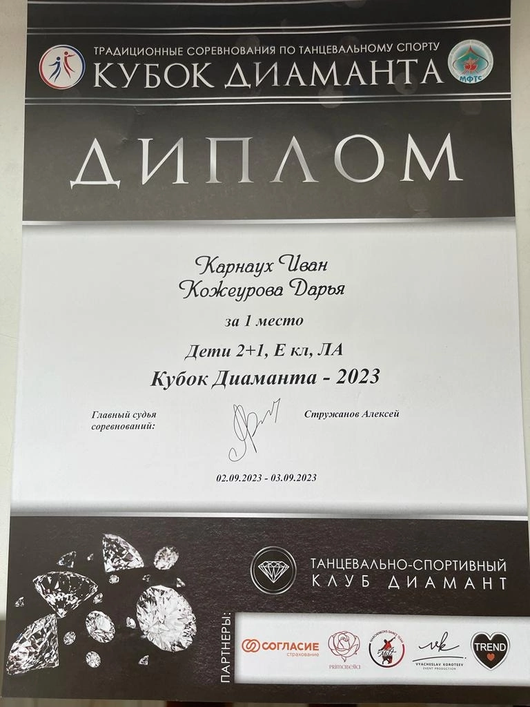 2 сентября учащиеся танцевально-спортивного клуба «Солнечные ритмы» ворвались в новый танцевальный сезон. Ребята приняли участие в соревнованиях «Кубок Диаманта» (г. Москва).