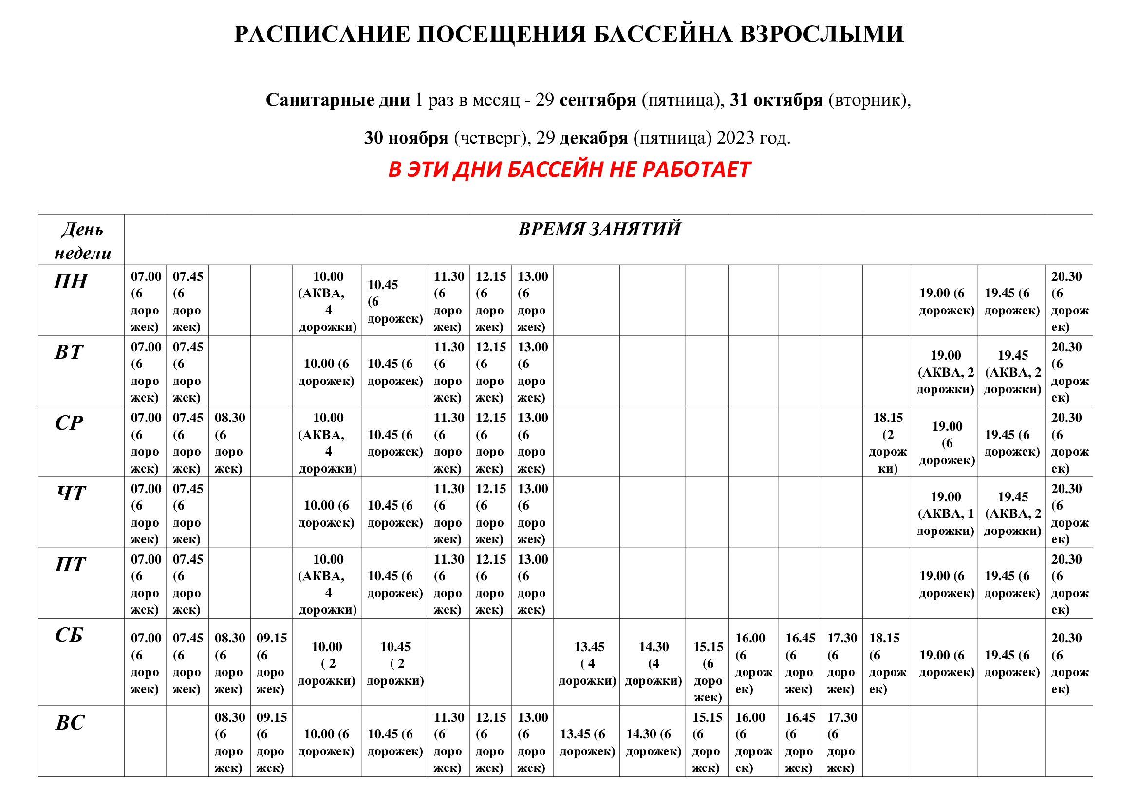 Главная Новости Бассейн Дворца детского творчества возобновляет свою работу для лиц старше 18 лет Бассейн Дворца детского творчества возобновляет свою работу для лиц старше 18 лет 11.09.2023 Внимание! Уважаемые посетители, бассейн Дворца детского творчества с 11 сентября 2023 года возобновляет свою работу для лиц старше 18 лет.