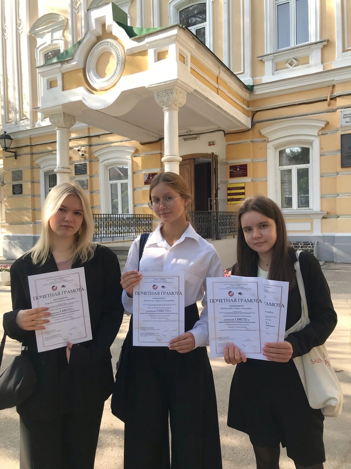 Федорищева Дарья (педагог Козлова М.А.) - 1 место в номинации «Роль перевода в обучении иностранному языку», а также 3 место в номинации «Наставник в жизни студента»,