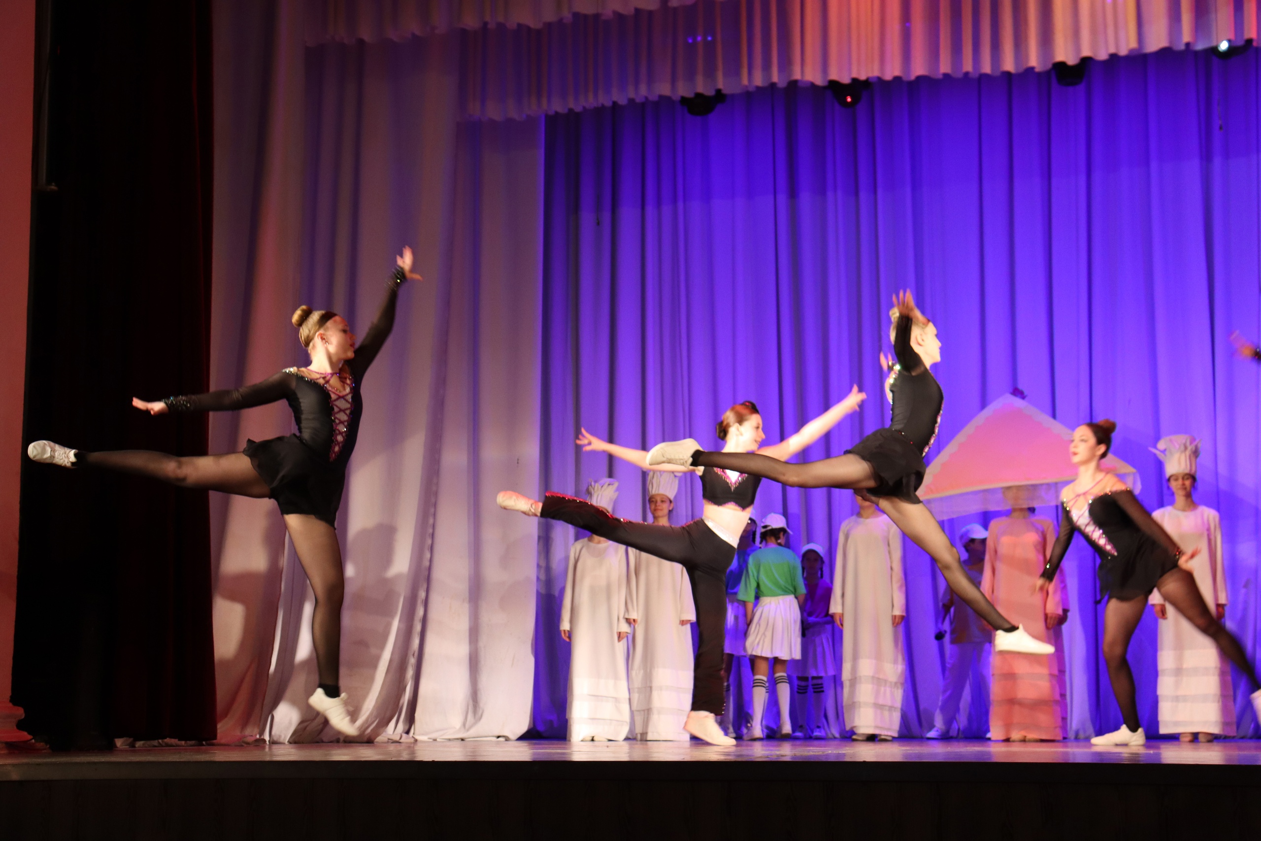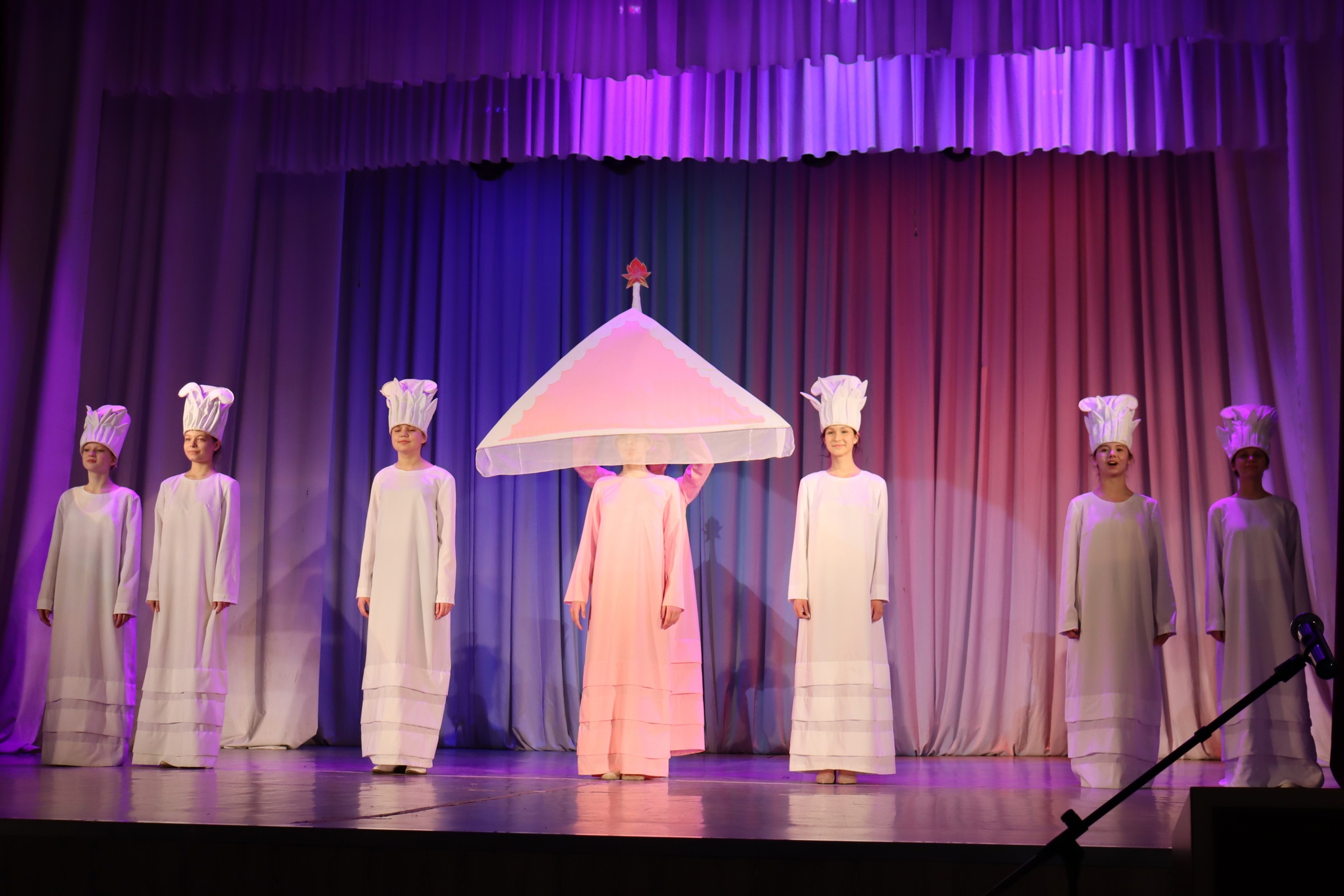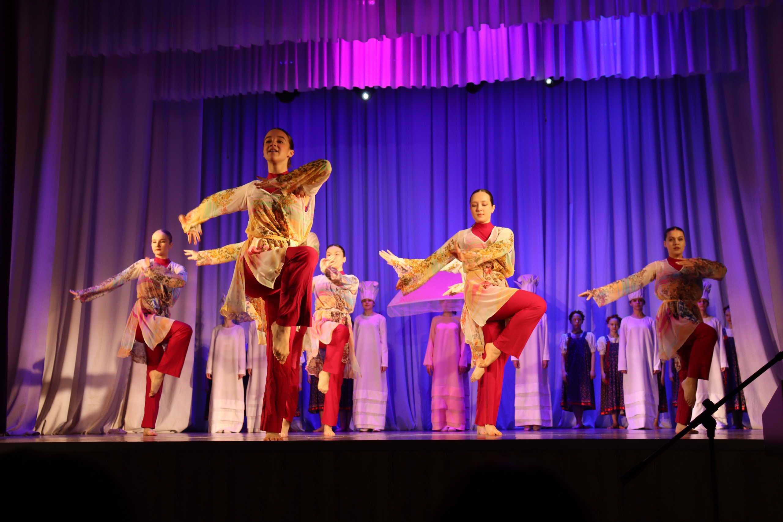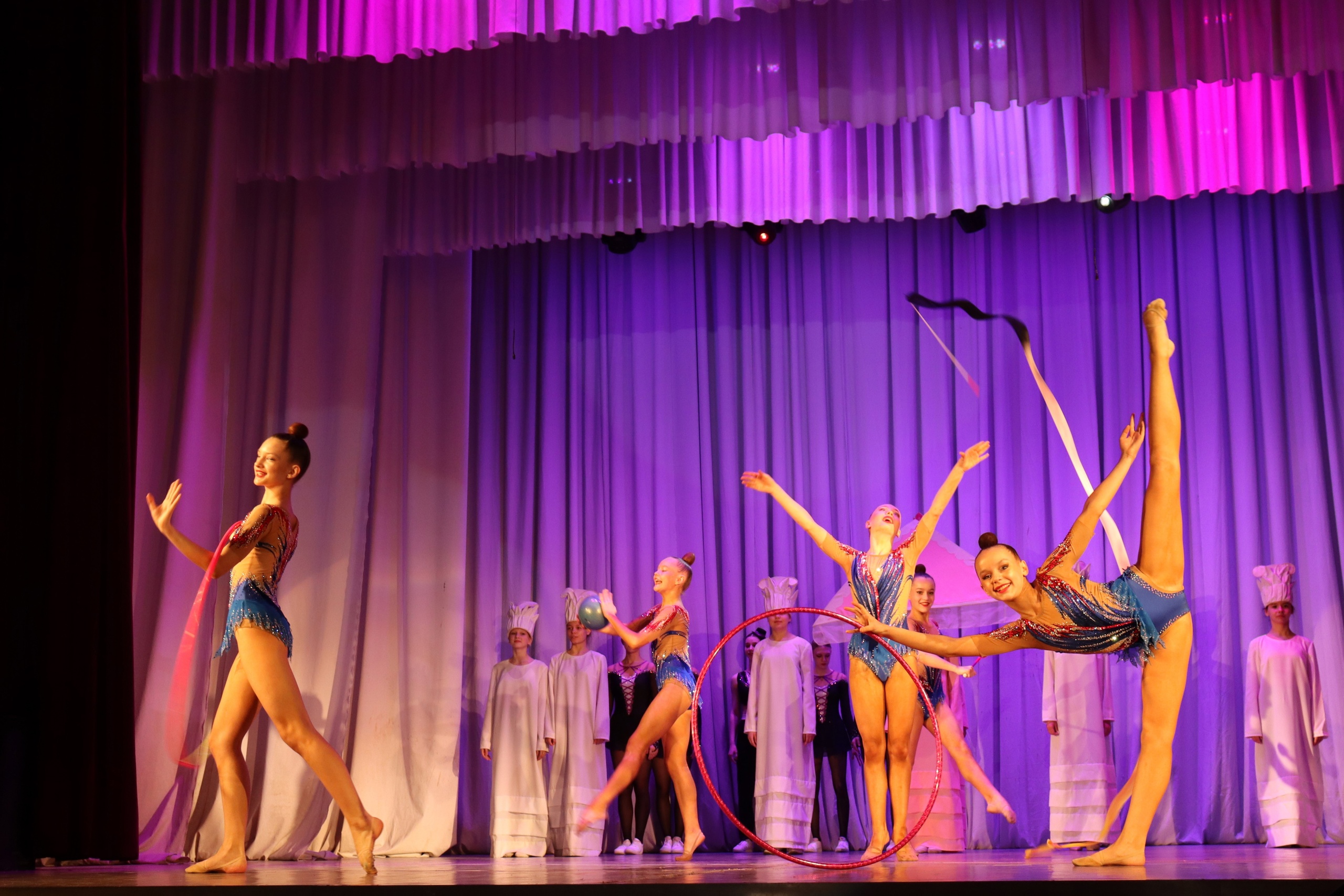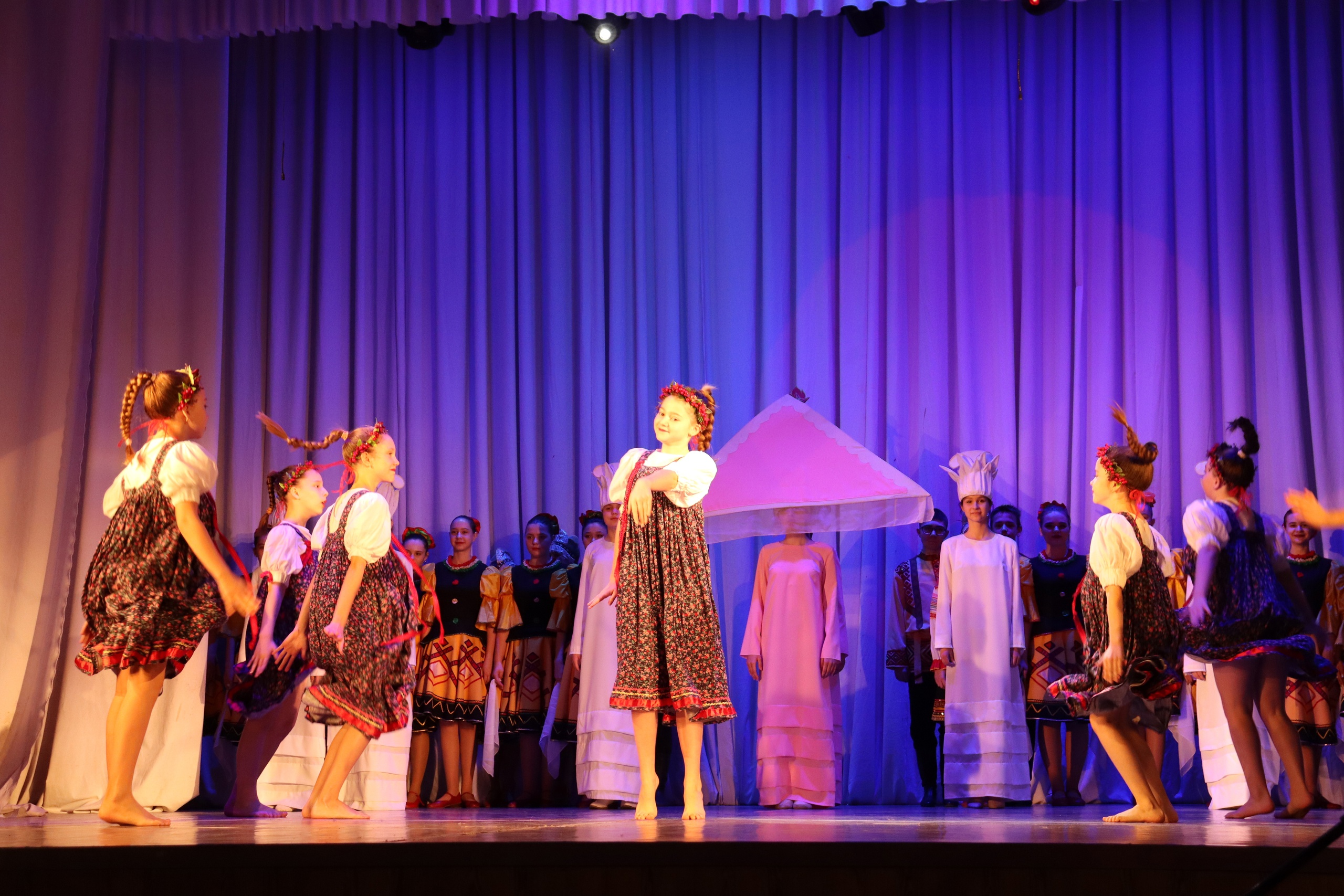 На сцене в зрительном зале дети и родители посмотрели праздничное представление, насыщенное яркими номерами.
