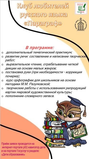 Дорогие родители, представляем вам объединение любителей русского языка «Параграф»