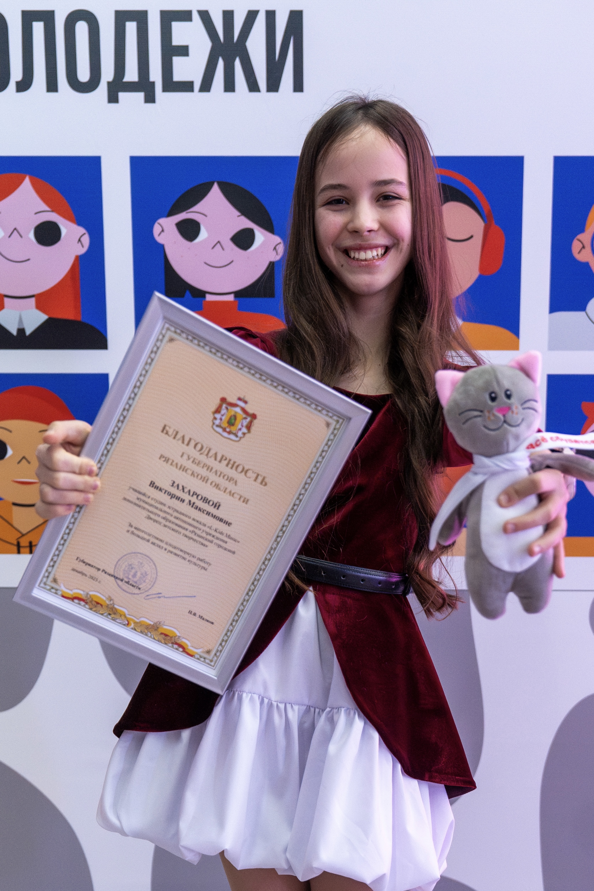 25 декабря в Доме молодежи состоялась торжественная церемония, на которой воспитанница студии эстрадного вокала «L-Kids Music» (руководитель — Лейла Эльшадовна Никитина) Виктория Захарова была награждена Благодарностью Губернатора Рязанской области.