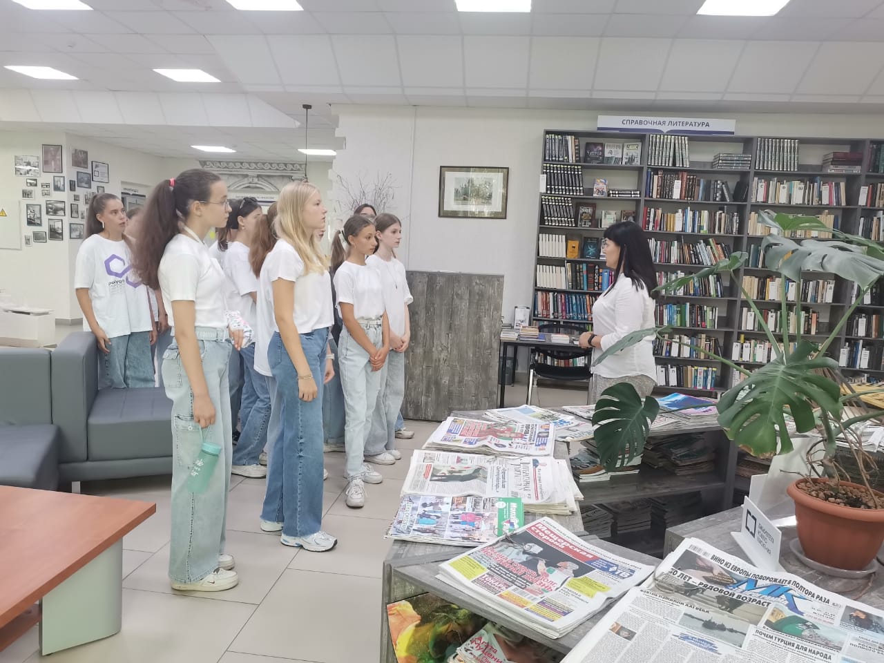 Для профильного отряда " Своя компания" оздоровительного лагеря "Смена" была проведена экскурсия в Центральной городской библиотеке имени С. А. Есенина. Сотрудники "есенинки" с любовью рассказали о том, чем располагает в настоящее время библиотека: это огромный книжный фонд, среди которого и редчайшие экземпляры, интерактивные зоны для разных категорий посетителей, уголки, посвящённые нашим знаменитым землякам (С. Есенин, К. Паустовский, Я. Полонский, Н. Чумакова и др).