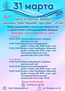 Новости 03.04.2024 Фестиваль за фестивалем 03.04.2024 Давайте восклицать, друг другом восхищаться! 01.04.2024 День открытых дверей во Дворце детского творчества 01.04.2024 Итоги X открытого городского конкурса-выставки креативных идей «АРТ-МАРТ»! 01.04.2024 Музыкальный конкурс в Санкт-Петербурге! 31.03.2024 «АРТ-МАРТ-2024» 31.03.2024 "Дворец приглашает друзей-2024" 29.03.2024 О НАШИХ ДОСТИЖЕНИЯХ ПИШУТ! 28.03.2024 Концерт «Венок из песен и цветов» 28.03.2024 XII международный конкурс «Союз Добра». 28.03.2024 Школьные каникулы во Дворце детского творчества! 27.03.2024 От «Начала» к «Началу»! 1 ... 57 58 59 60 61 ... 177