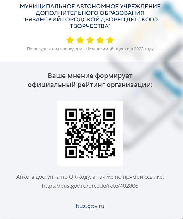 Просим Вас принять участие в независимой оценке качества оказания услуг Рязанским городским Дворцом детского творчества: