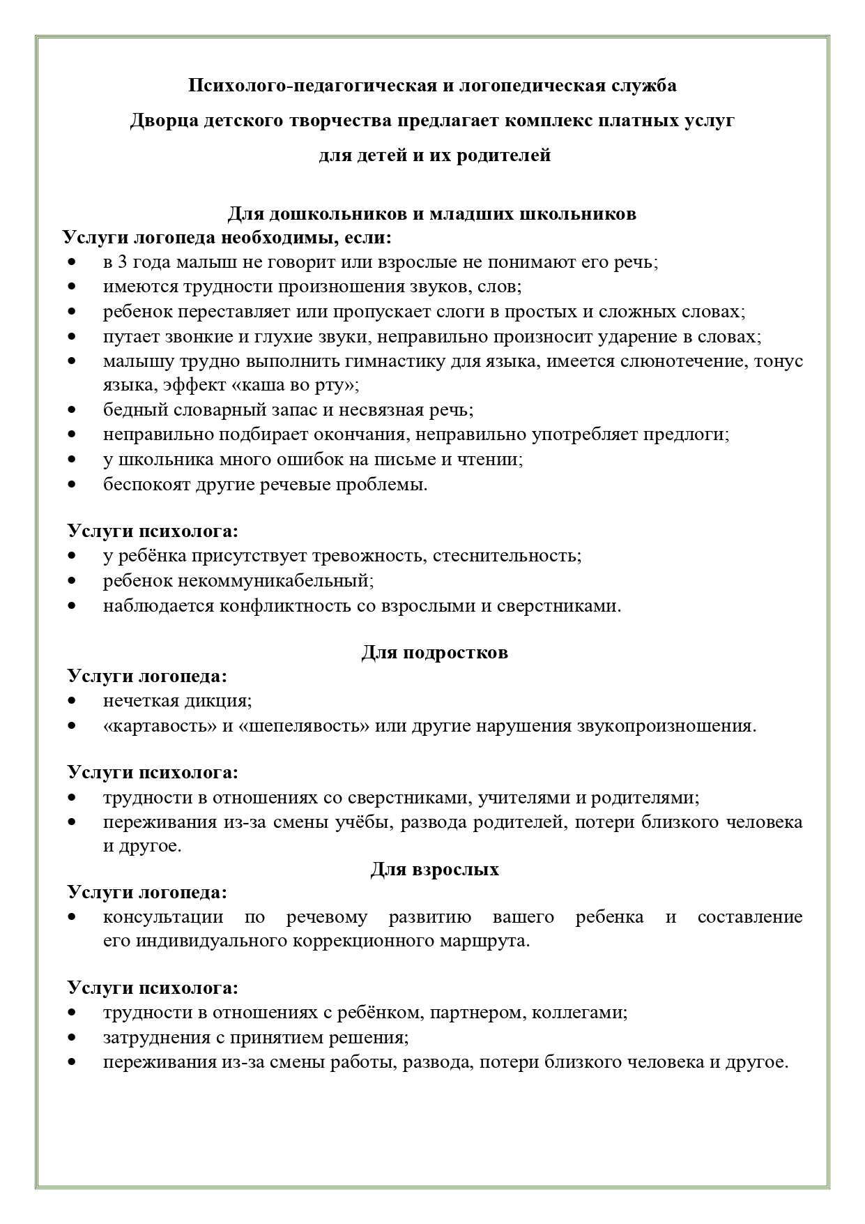 ПЛАН РАБОТЫ службы психолого-педагогического и логопедического сопровождения муниципального автономного учреждения дополнительного образования «Рязанский Дворец Первых» на 2025-2026 учебный год
